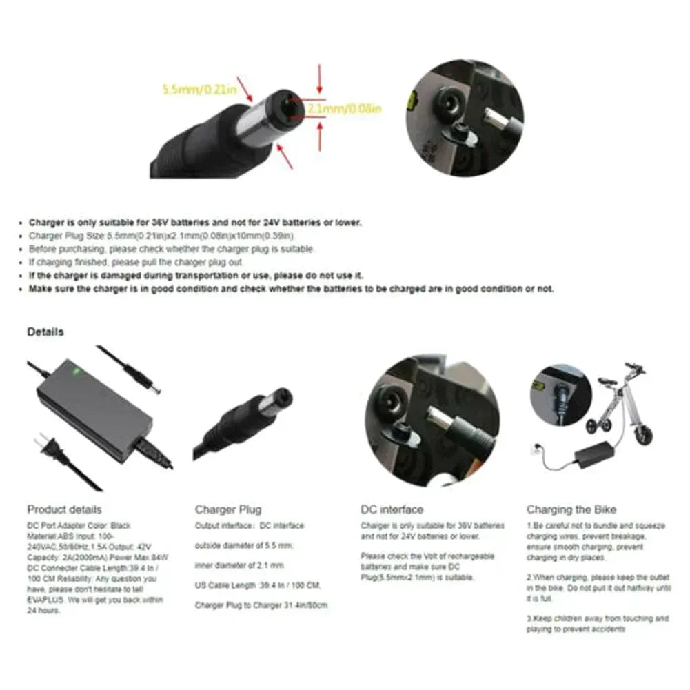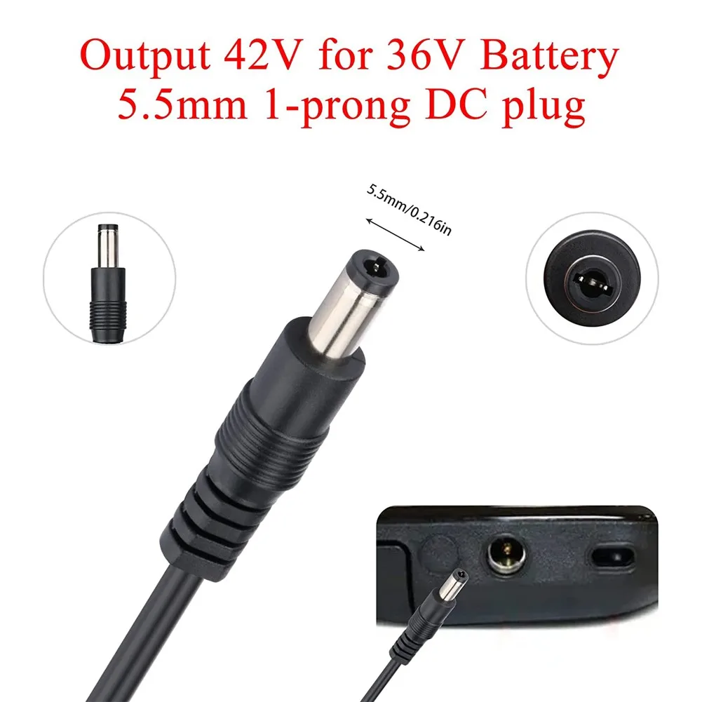 * Safe and fast: CC-CV working mode to extend life of batteries. Output: 42V 2Amp. Auto stop when battery is fully charged. Multiple protections to ensure safety.