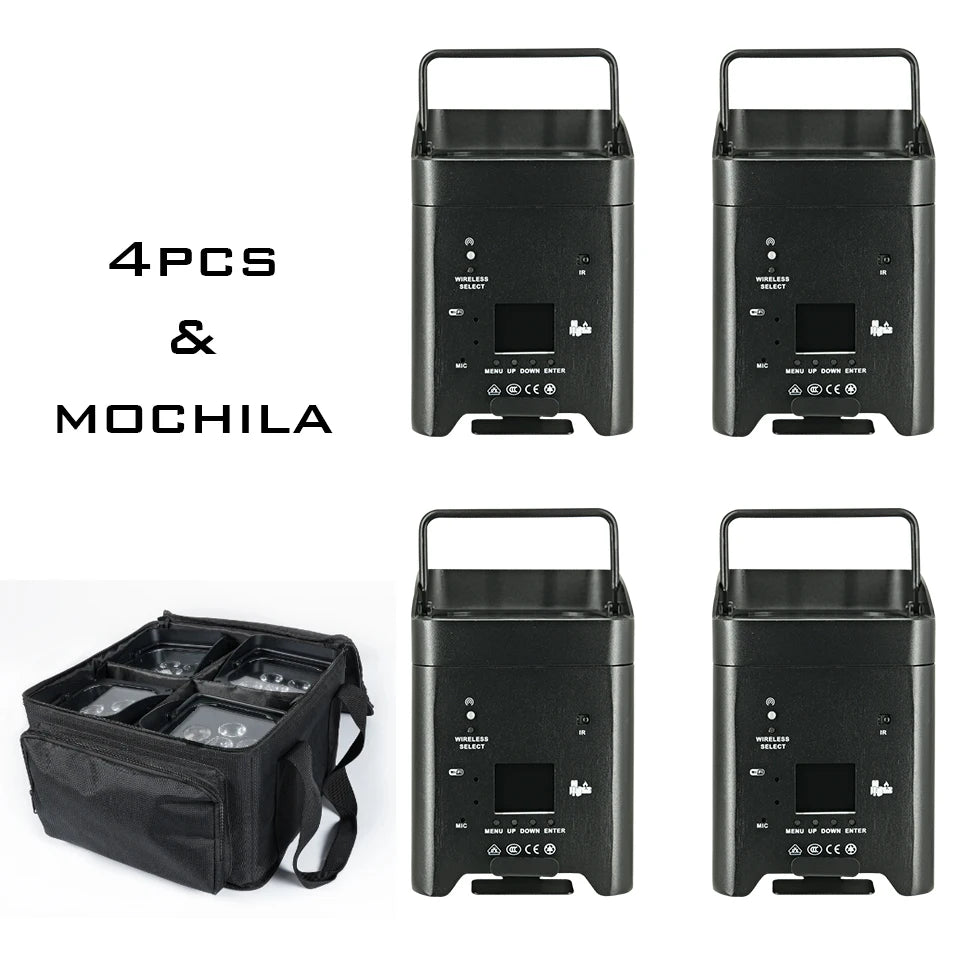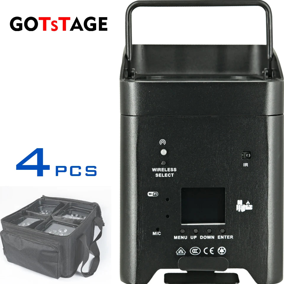 4PCS Wireless Remote Control LED 6x18W 6 in 1 RGBAW+UV Par Light Battery Movable for Disco KTV Bar Christmas Lights