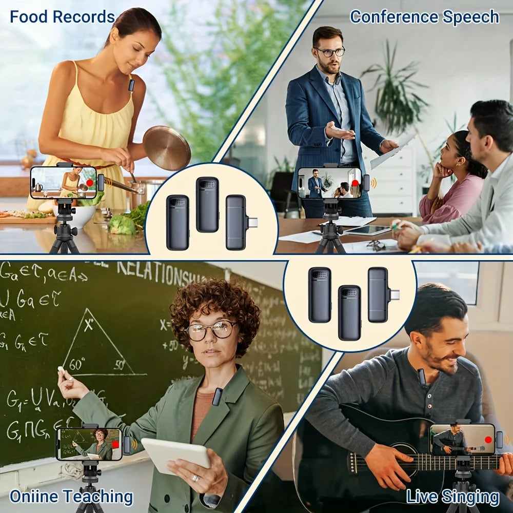 Lavalier Microphone with Charging Case Wireless mini mic for Android IOS Phone with Noise-canceling Function to Record Videos