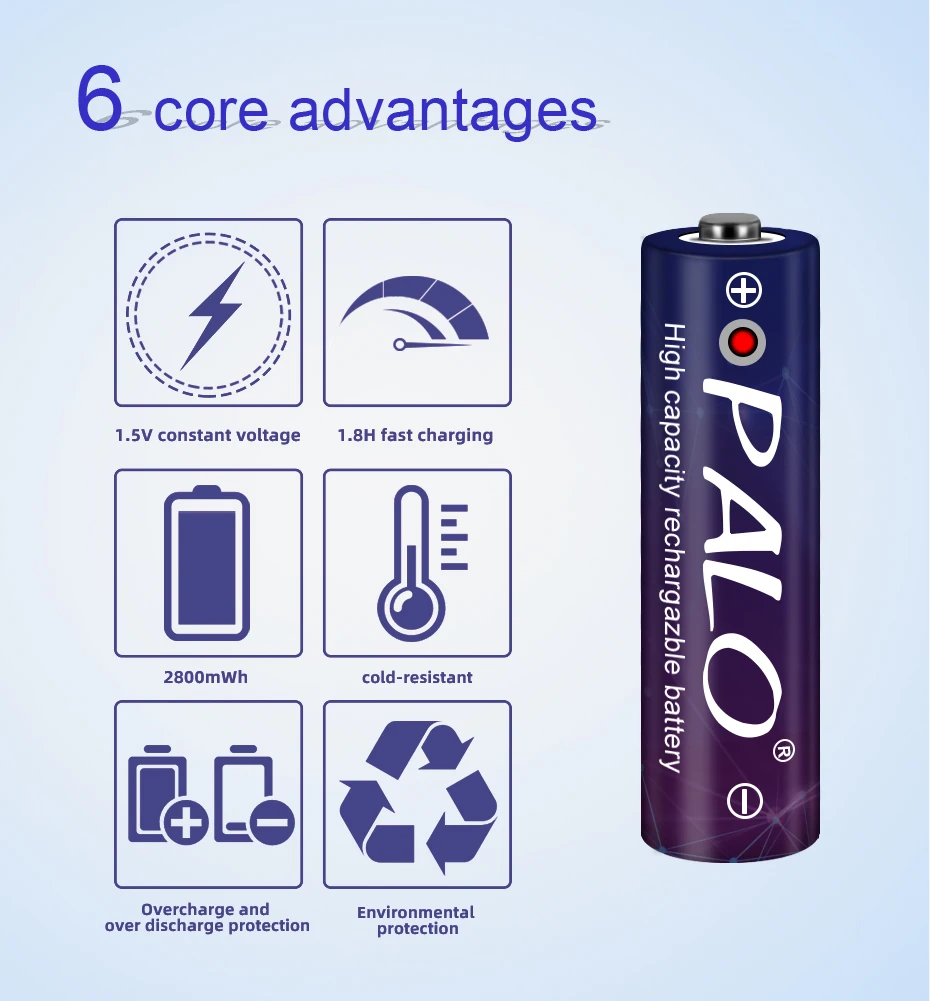 PALO 1.5V AA Li-ion Rechargeable Battery AA 1.5V 2800mWh lithium AA li-ion rechargeable battery Bateria AA 1.5V for thermometer