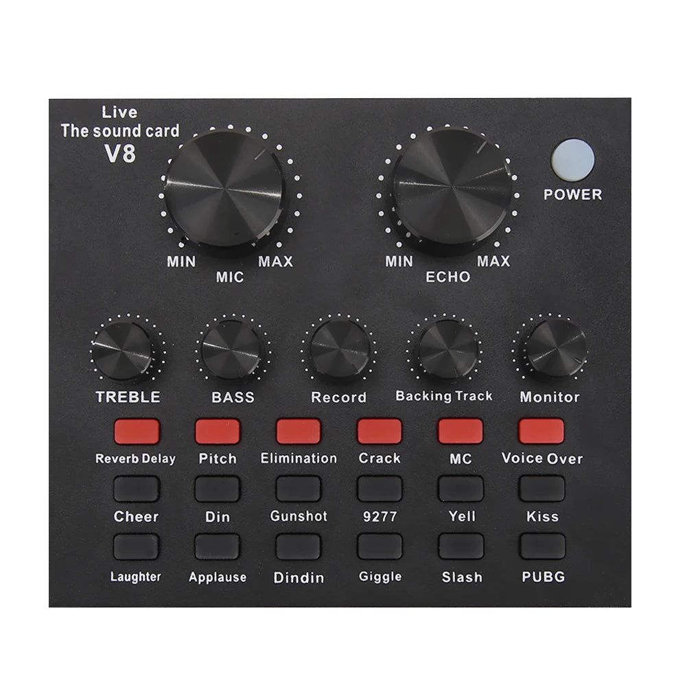 ![]() 4. 7 kinds of connecting methods: one cell phone K song live, double cell phone live, three mobile phone live, mobile phone computer synchronous live, one computer live, computer accompaniment cell phone live, instrument input cell phone live. 5. Bluetooth-compatible function. Specification: Battery: lithium ion rechargeable battery Material: Metal Color: Black Product size: 125x105x25mm/4.92x4.13x0.98'' Weight: 467g Note: Please allow 1-3mm differs due to manual measurement. Due to the different display and different light, the picture may not show the actual color of the item. Thanks for your understanding. ![]() 1 x Sound Card