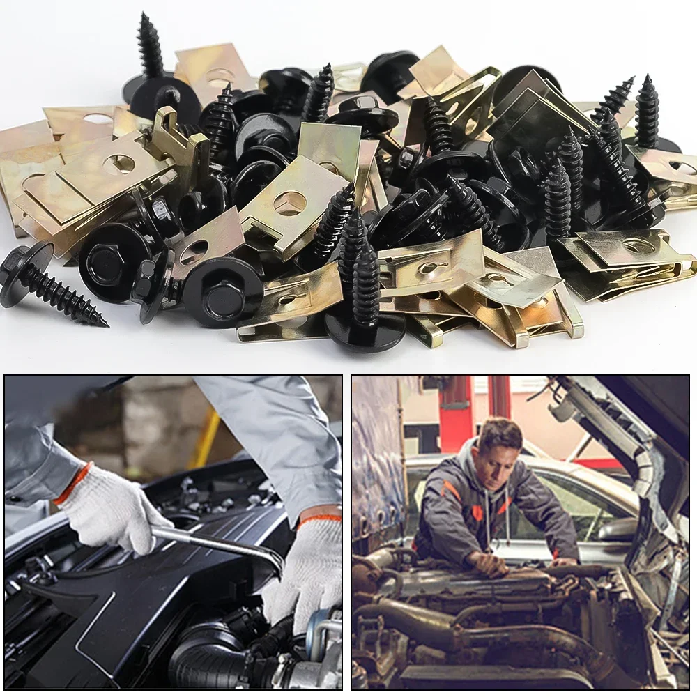 【WIDE COMPATIBILITY】: Our self-tapping screws and U-shaped clamps are specifically designed to fit a range of BMW models, including the 1 Series, 3 Series, 5 Series, 6 Series, 7 Series, 8 Series, X1, X3, X5, X6, Z1, Z3, MINI, and various R Series models. Perfect for securely fastening decorative elements without compromising on style.