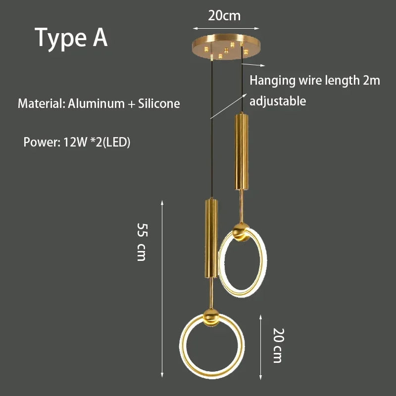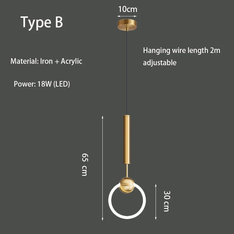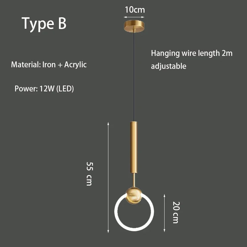 Pendant Lamp Bedroom Bedside Lamp Modern Minimalist Nordic Light Luxury Chandelier Restaurant TV Background Wall Chandelier