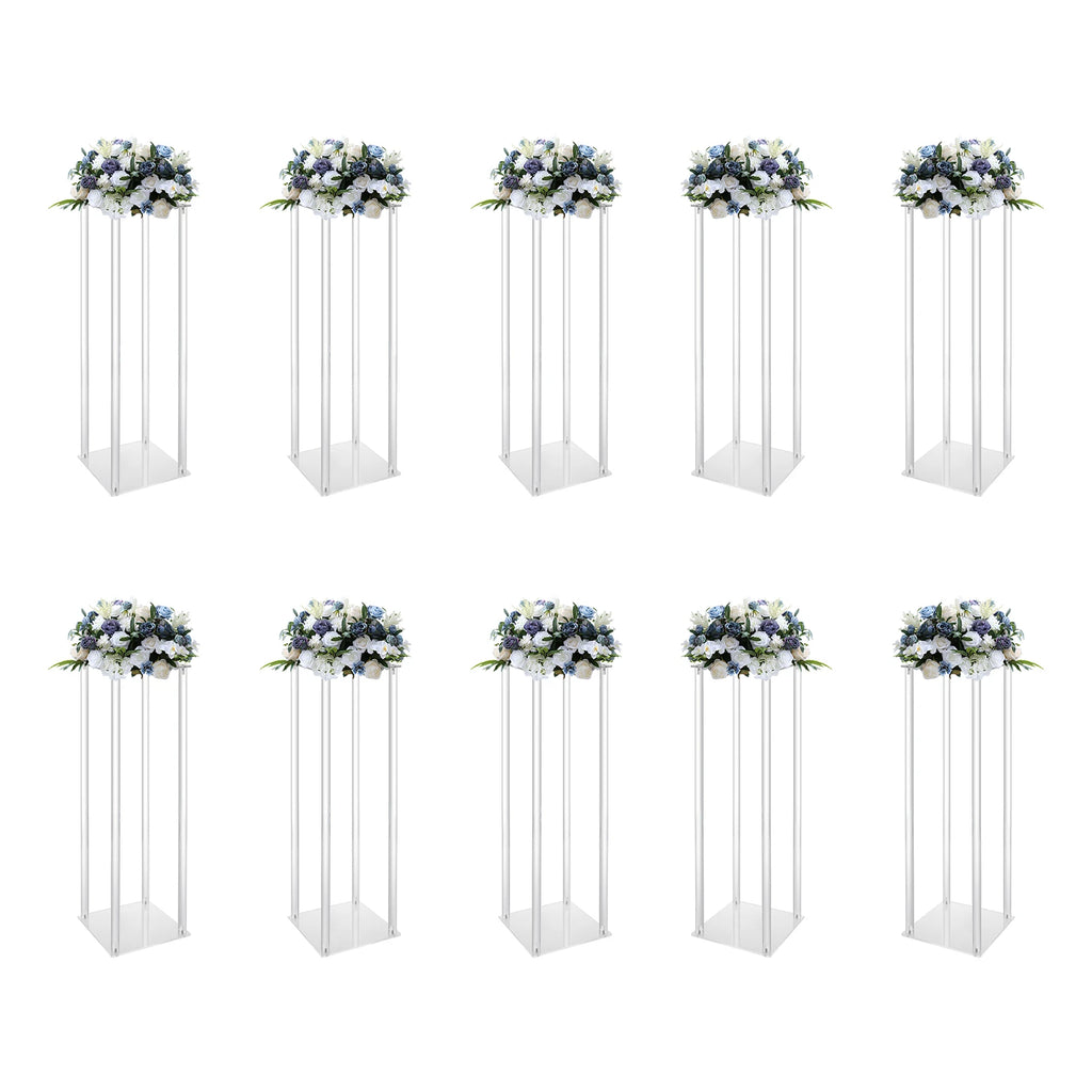 10Pcs Acrylic Vase Wedding Centrepieces Flower Stands Set 23.6"H Free Standing Clear Column Rack Geometric Display Stand for Home Party Wedding Banquet Decor