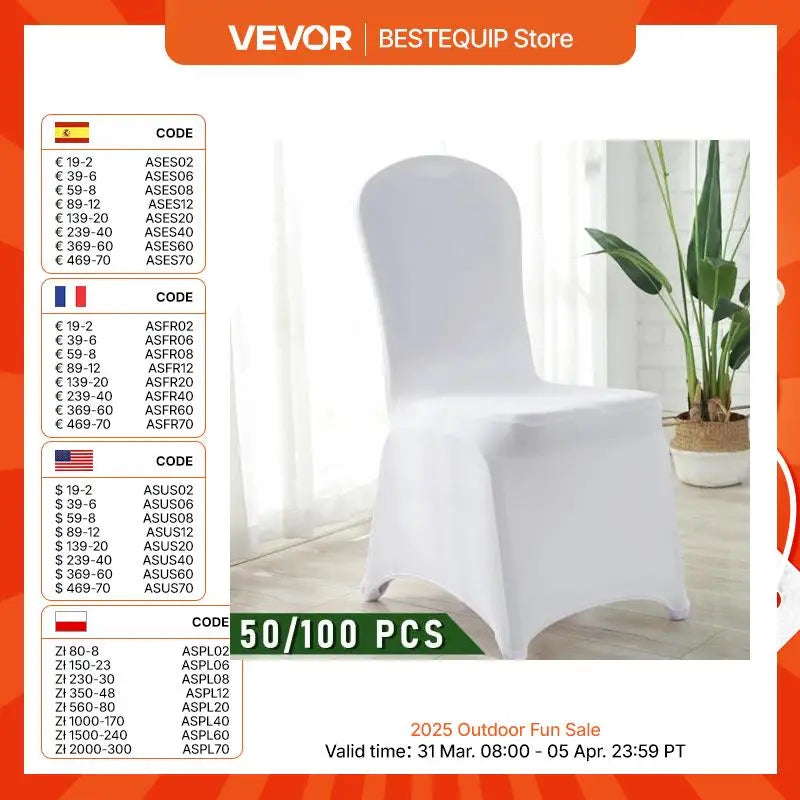 - Premium Material: Color: White; Quantity per box: 12/30/50100 PCS; Material: 95% Polyester Fiber & 5% Spandex. Durable fabric and quality stitching offer additional comfort and elasticity. Universal spandex folding chair covers are designed to protect your chairs from accidental spills, pet scratches, everyday stains, and tears, making them ideal for both indoor and outdoor events.