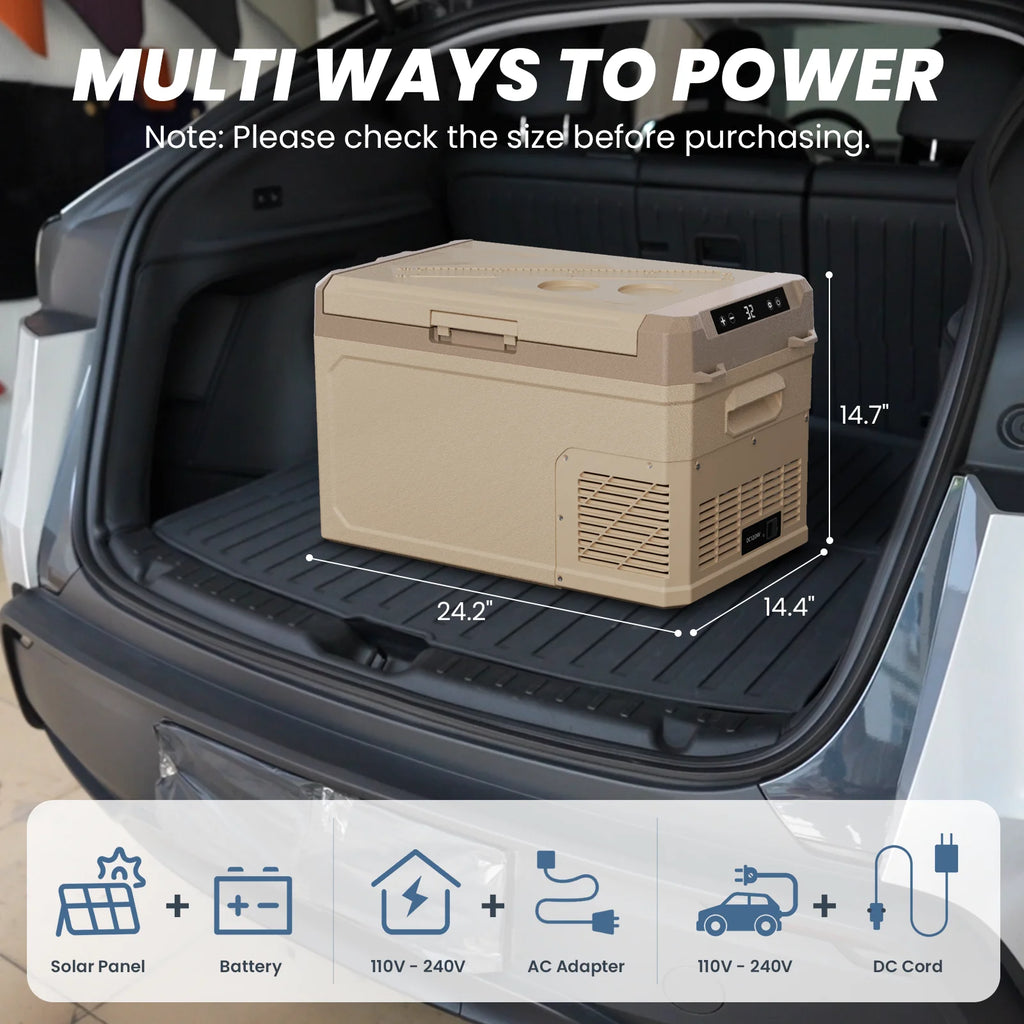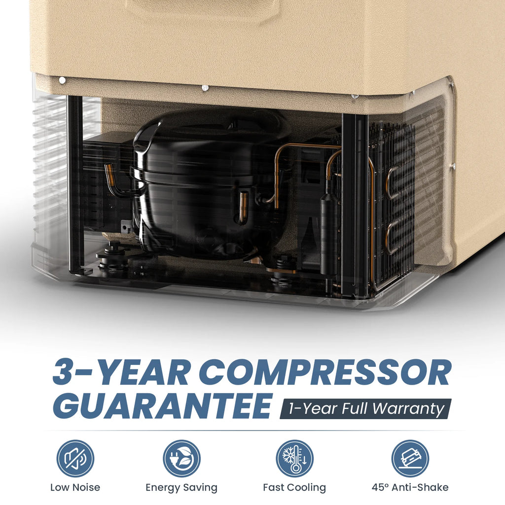 This 35/45L portable car fridge features two independent compartments with separate temperature control (can be set as fridge/freezer, freezer/freezer). Each zone operates independently, allowing you to store different items at their ideal temperatures.