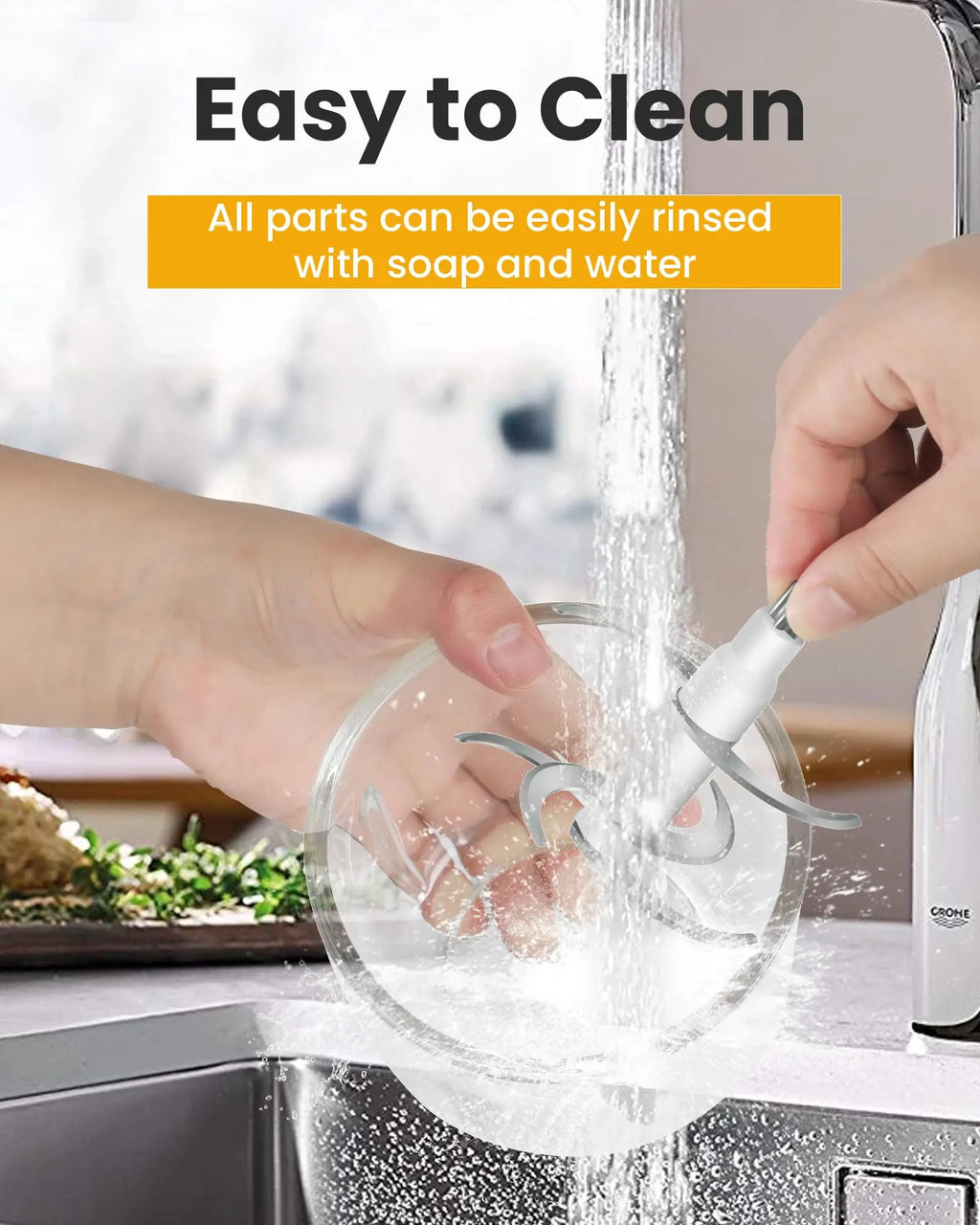 Equipped with a 350W motor and a sharp 6-blade blade,Wancle food chopper can quickly and evenly chop meat, vegetables and other ingredients.