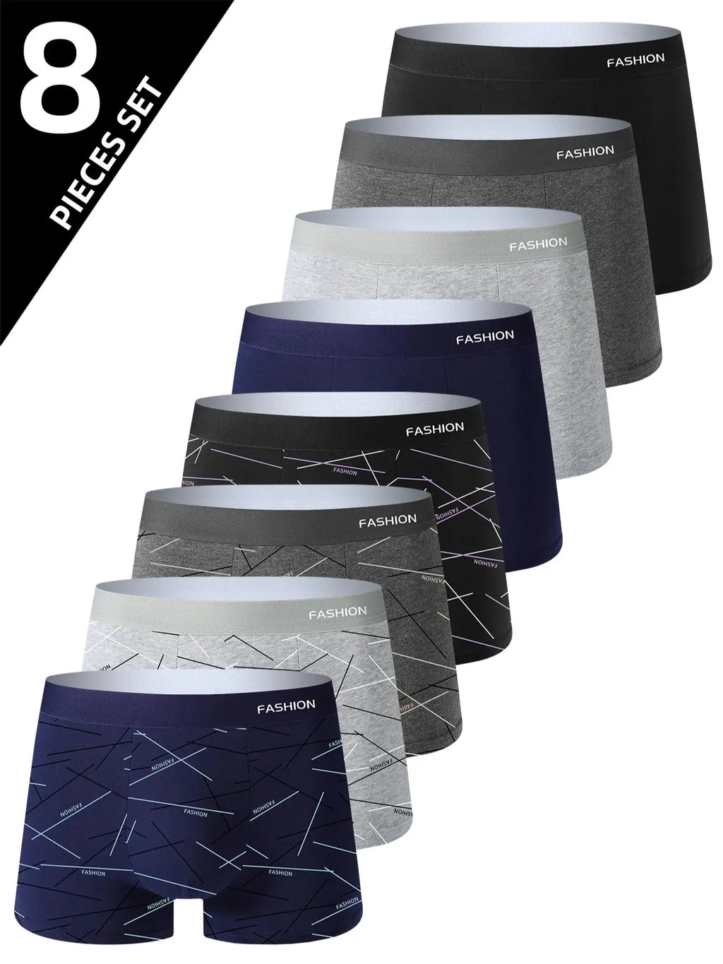 8PCS Men's Underwear Soft Healthy Breathable Men's Boxer Briefs Fashionable Trendy Lines High Quality Casual Sports Men's Pants