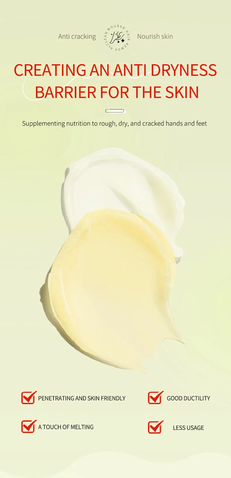 Function1: Relieve Itching Antifreeze and crack, repair and moisturize,It can promote skin microcirculation, make the skin rosy and shiny, prevent dryness, and maintain a healthy state of the skin