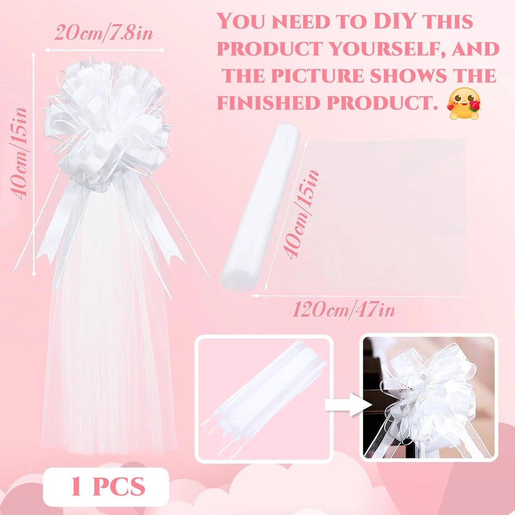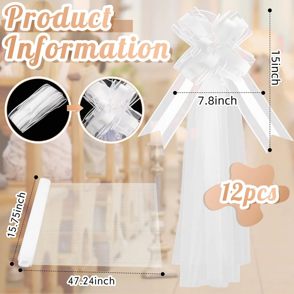��Ample Set for Dreamy Effect: there are 12/16white tulle straps, and 12/16 tulle bow ties, allowing you to make 12/16 sets of large white wedding pull bows with long tulle tails, which is ideal for enhancing the visual appeal of your wedding aisles, gift items or wedding decorations; This tremendous pack manifests an exquisite blend of style and quantity to make your wedding a memorable affair