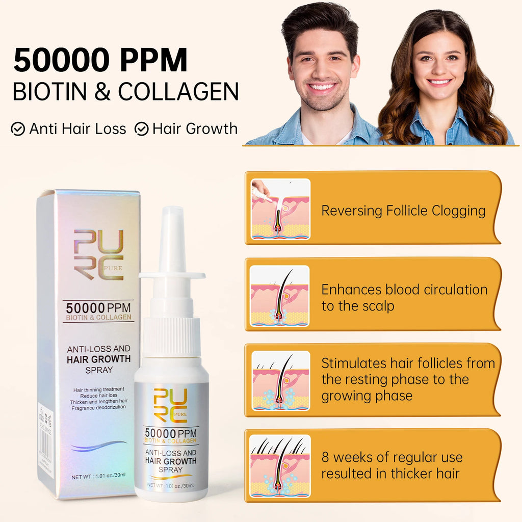 PURC Biotin Hair Growth Products for Man Women Anti Hair Loss Oil Scalp Treatment Serum Spray Thicken Fast Regrowth Hair Care