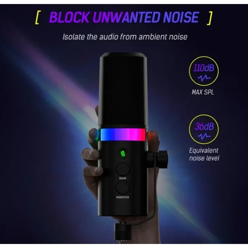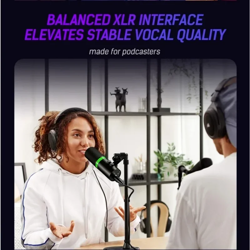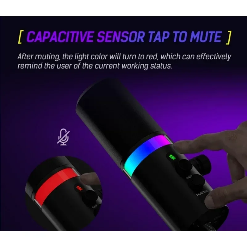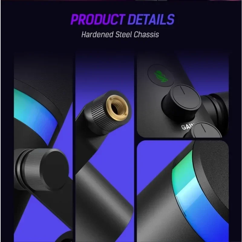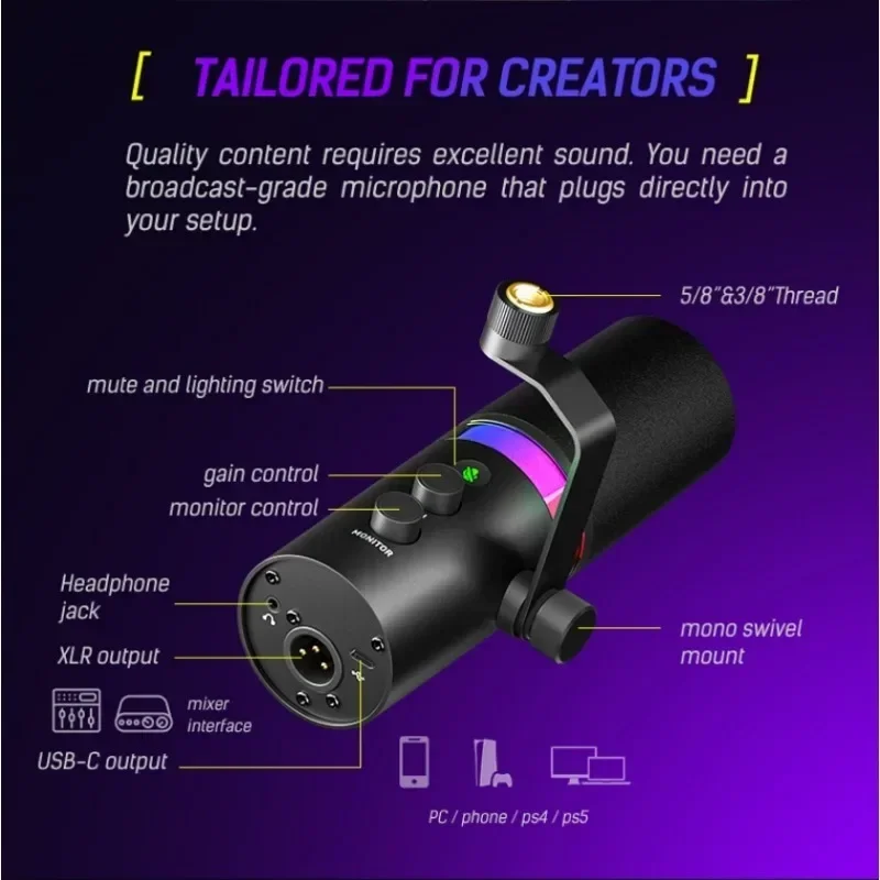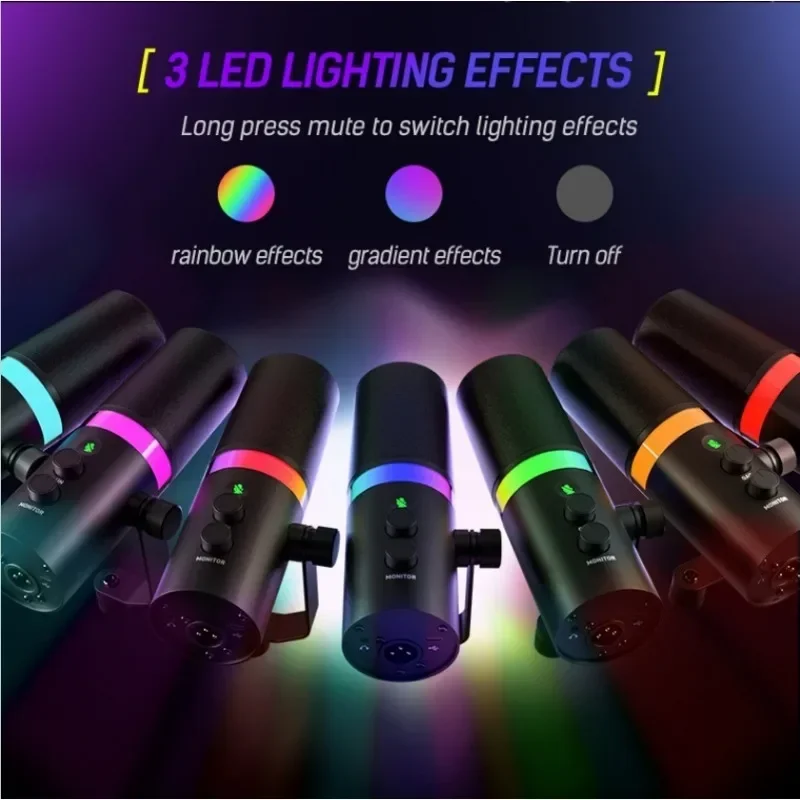 USB/XLR Dynamic Microphone Touch-mute Headphone Jack&Volume Control,for Youtube PC Game Sound Card Recording Metal -LM20