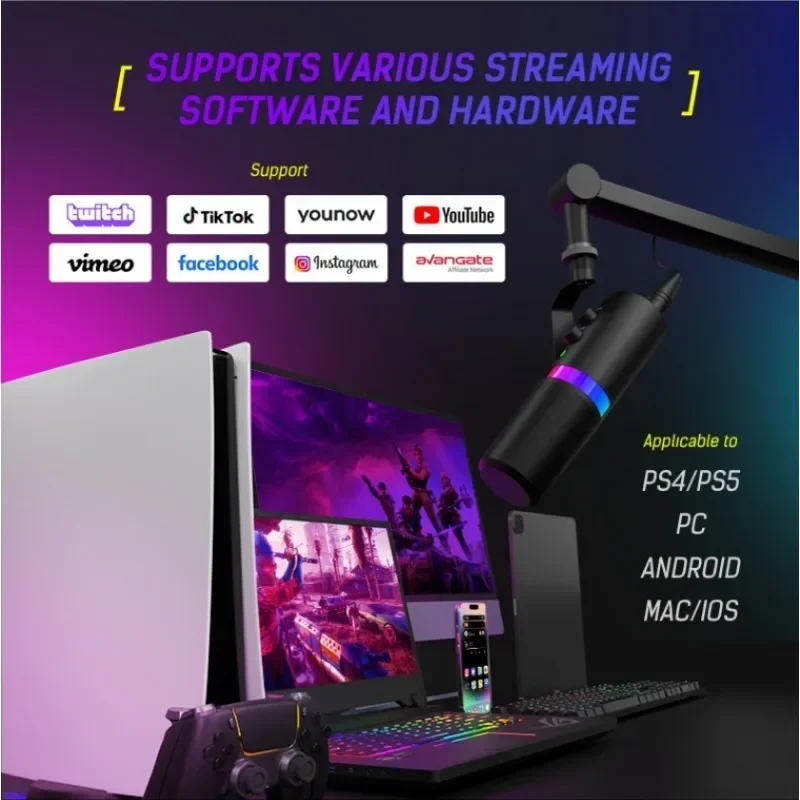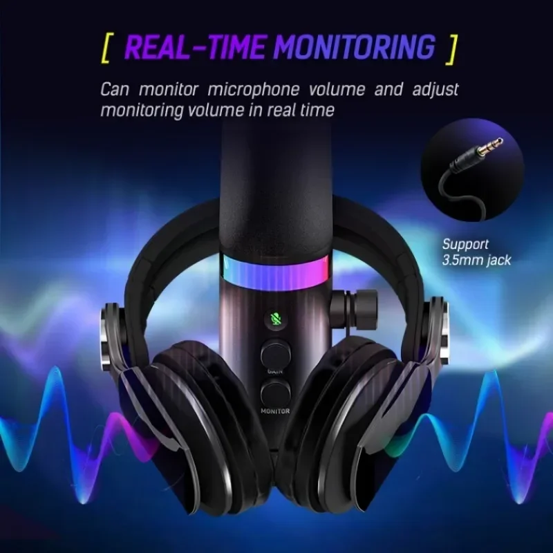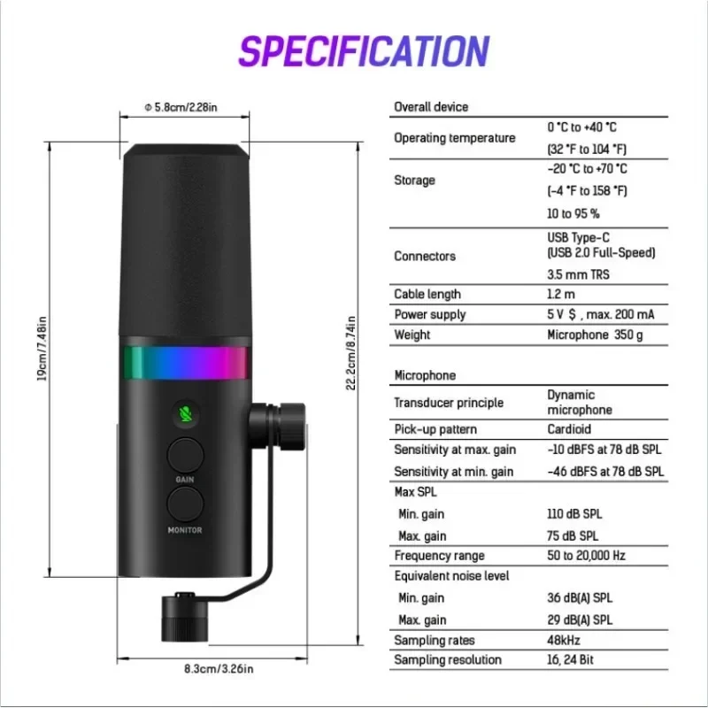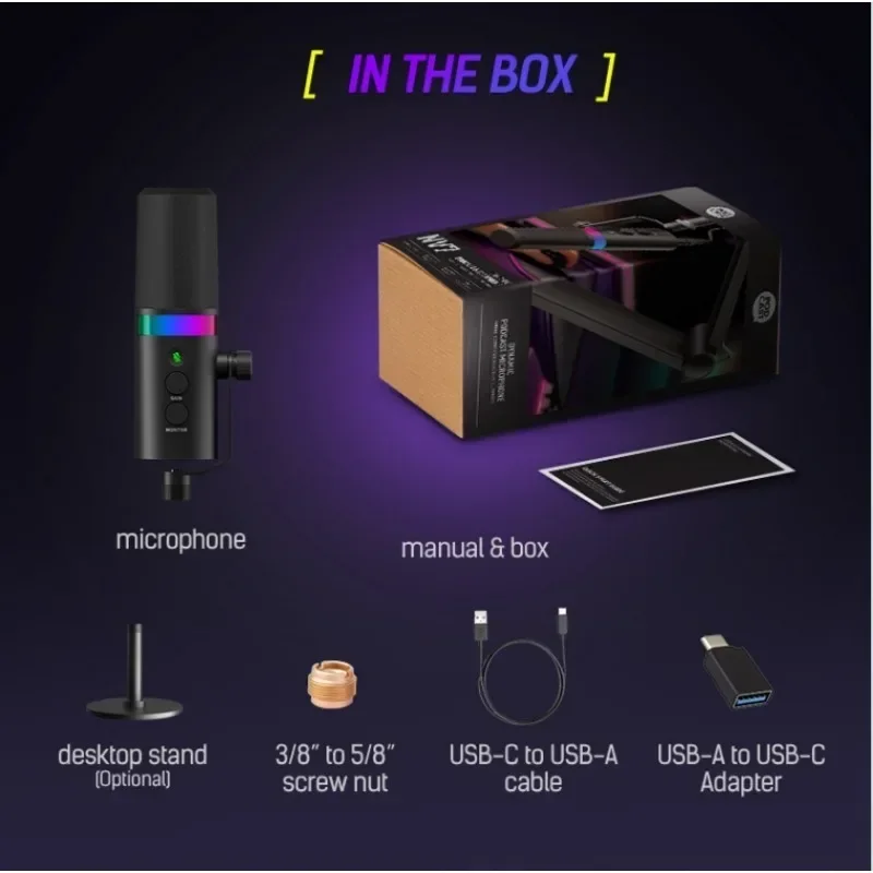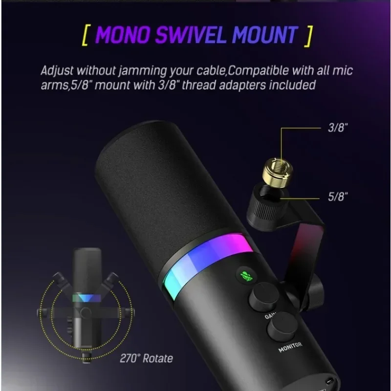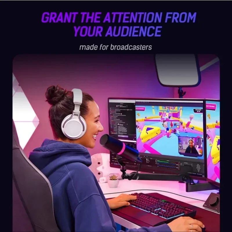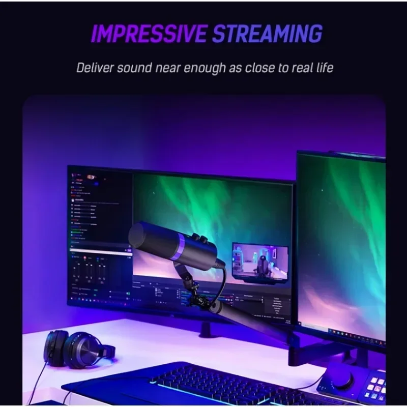 USB/XLR Dynamic Microphone Touch-mute Headphone Jack&Volume Control,for Youtube PC Game Sound Card Recording Metal -LM20