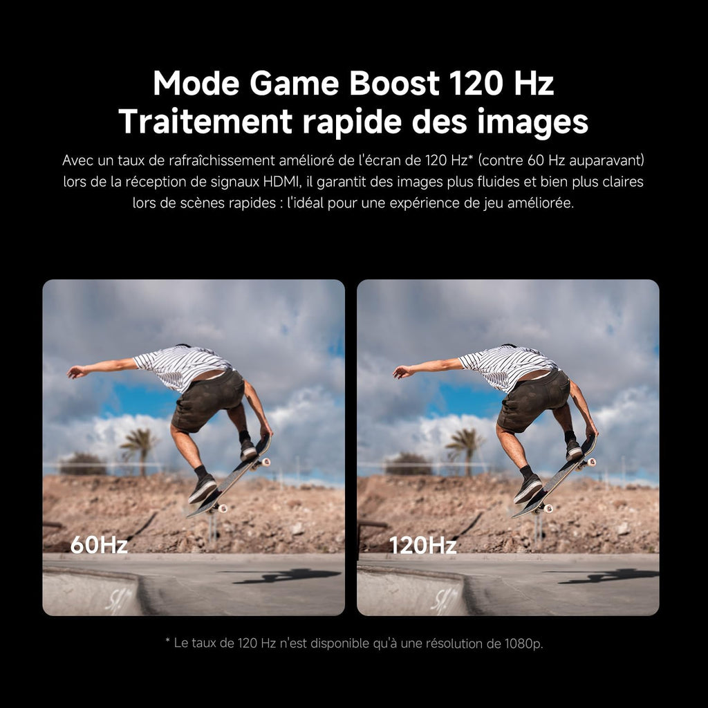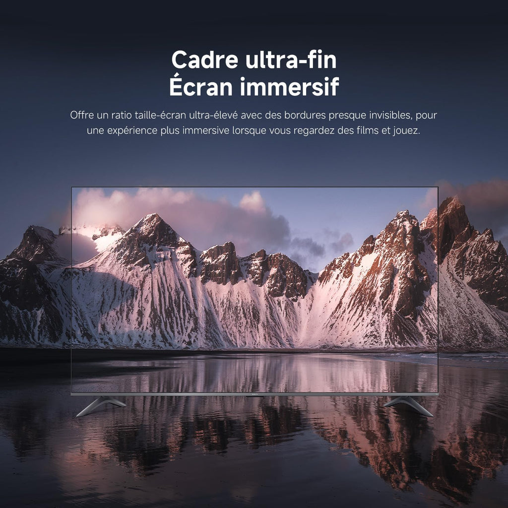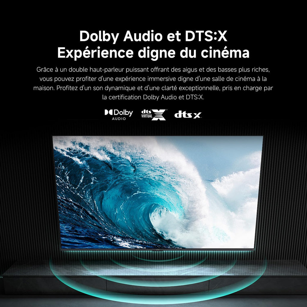Écran 4K lumineux avec technologie de fluidification des mouvements Taux de rafraîchissement de 120 Hz en mode Game Boost via HDMI Finition métallique élégante avec cadre ultra-fin Son immersif avec Dolby Audio™, DTS:X, DTS Virtual:X Tout ce que vous diffusez – sur un seul écran