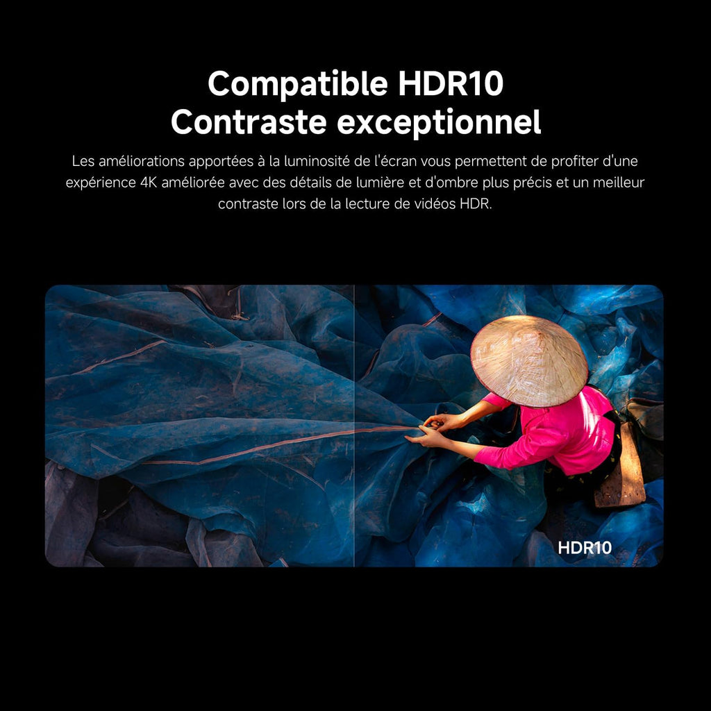 - 【4K HDR10 & Mode Filmmaker】Profitez d'une clarté exceptionnelle en 4K avec le HDR10, offrant un contraste amélioré et des couleurs plus riches. Découvrez des détails plus nets, dans les scènes sombres comme lumineuses. Activez le Mode Filmmaker pour une expérience cinématographique authentique, conforme aux standards d'Hollywood, et découvrez l'image telle que voulue par le réalisateur. Une qualité d'image bien supérieure à la HD classique.